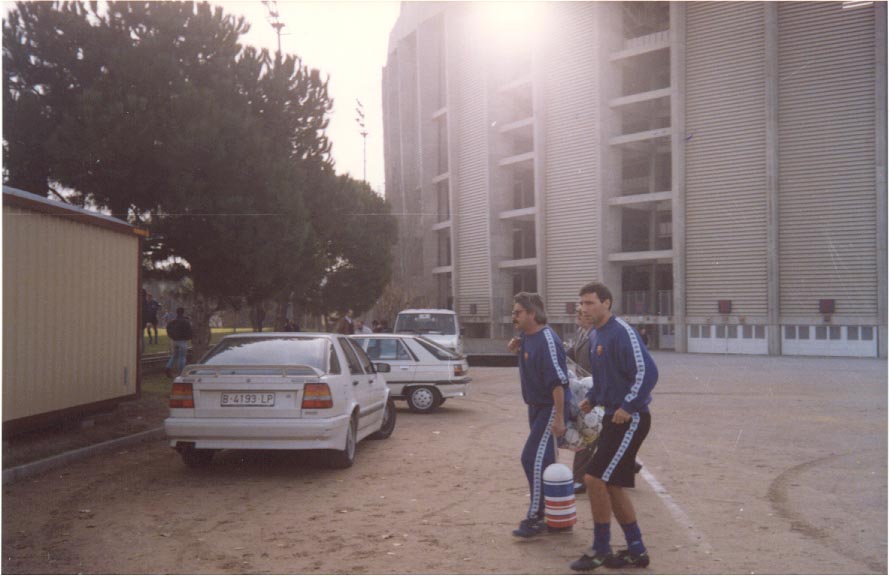 Tja, ben je in Barcelona, dan moet je uiteraard Nou Camp hebben gezien en dat heb ik dus vele malen. We zijn vaak bij trainingen gaan kijken en heb daar ook via Lindy 2 jongens leren die spullen verkochten bij het stadion. Dit is een foto van Stoichkov, die toen razend populair was en ik moest dan ook voor vele mensen in Nederland een foto van hem zien te maken, wat mij dan ook gelukt is (en van vele anderen).