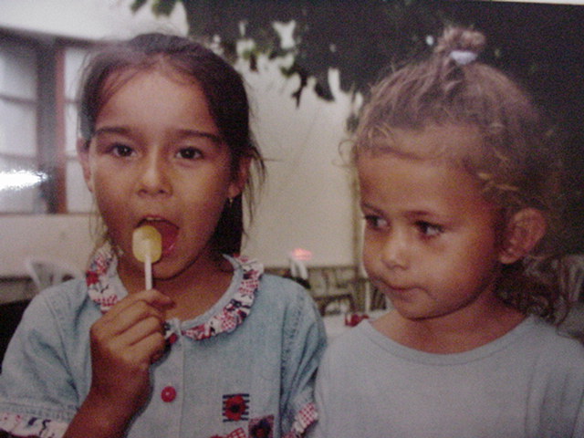 Vanessa en Celina in Doniņos...mmm, wel lekker zo'n lolly
