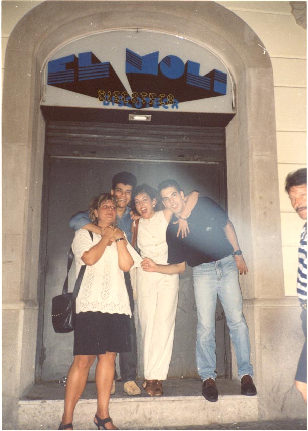 Hier zie je Claudia, Alberto, Olga en Fernando voor de discotheek El Moli (die nu geloof ik niet meer bestaat) |